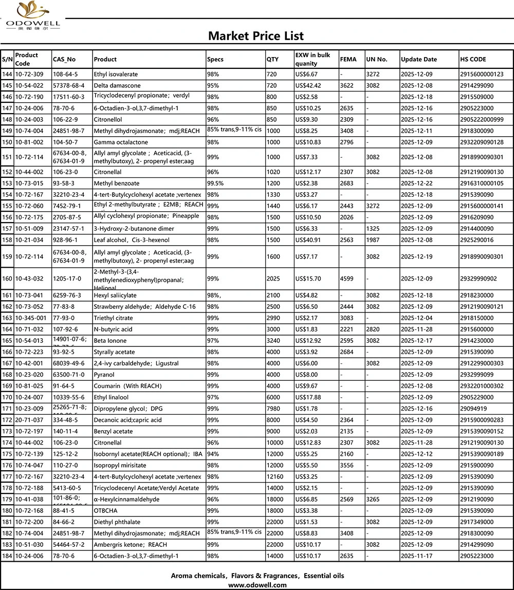Allyl Cyclohexyl Propionate – Pineapple Ester ຂອງ ODOWELL ເພື່ອຄວາມສົດຊື່ນ, ກິ່ນຫອມຕິດທົນນານ